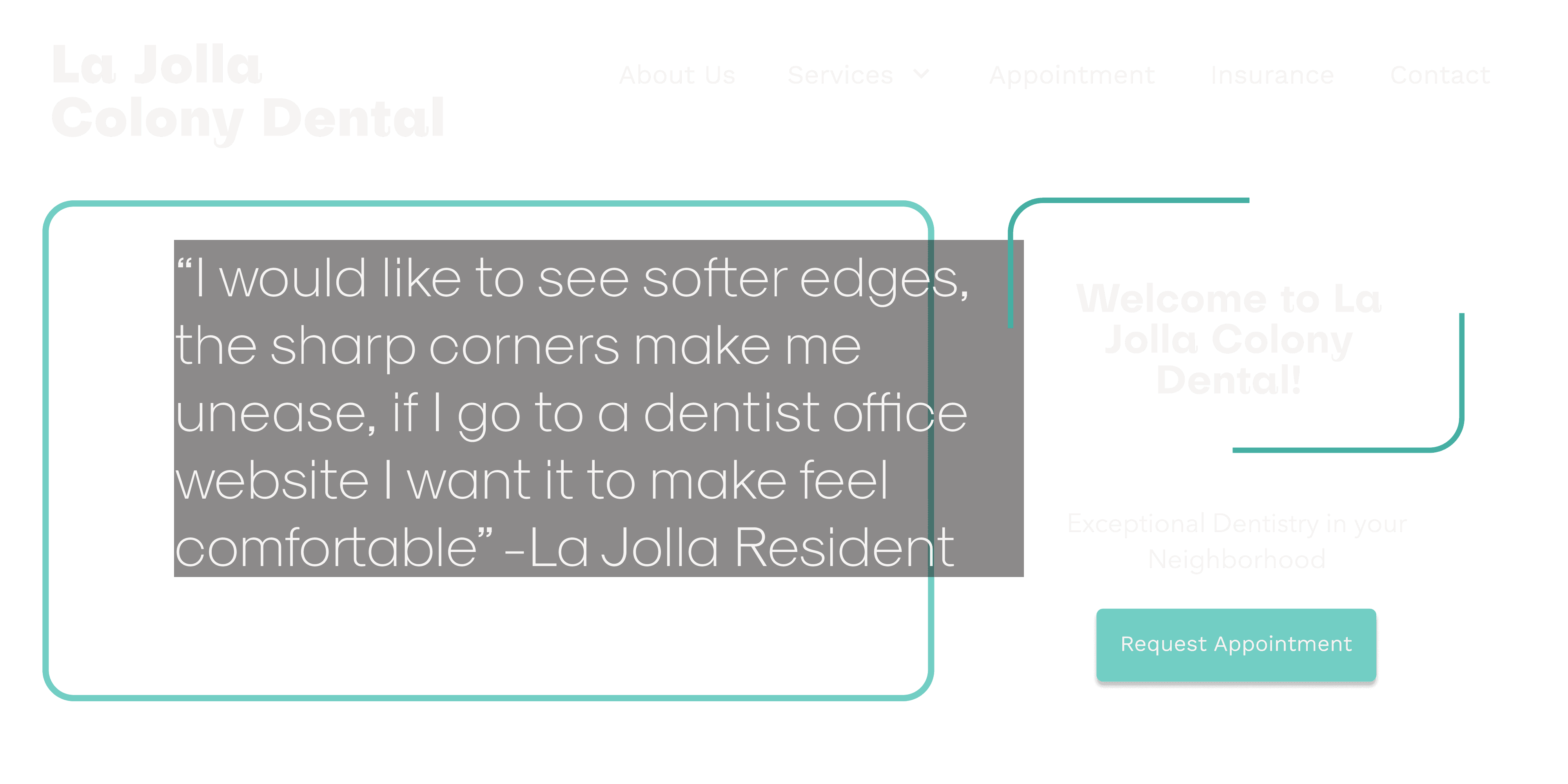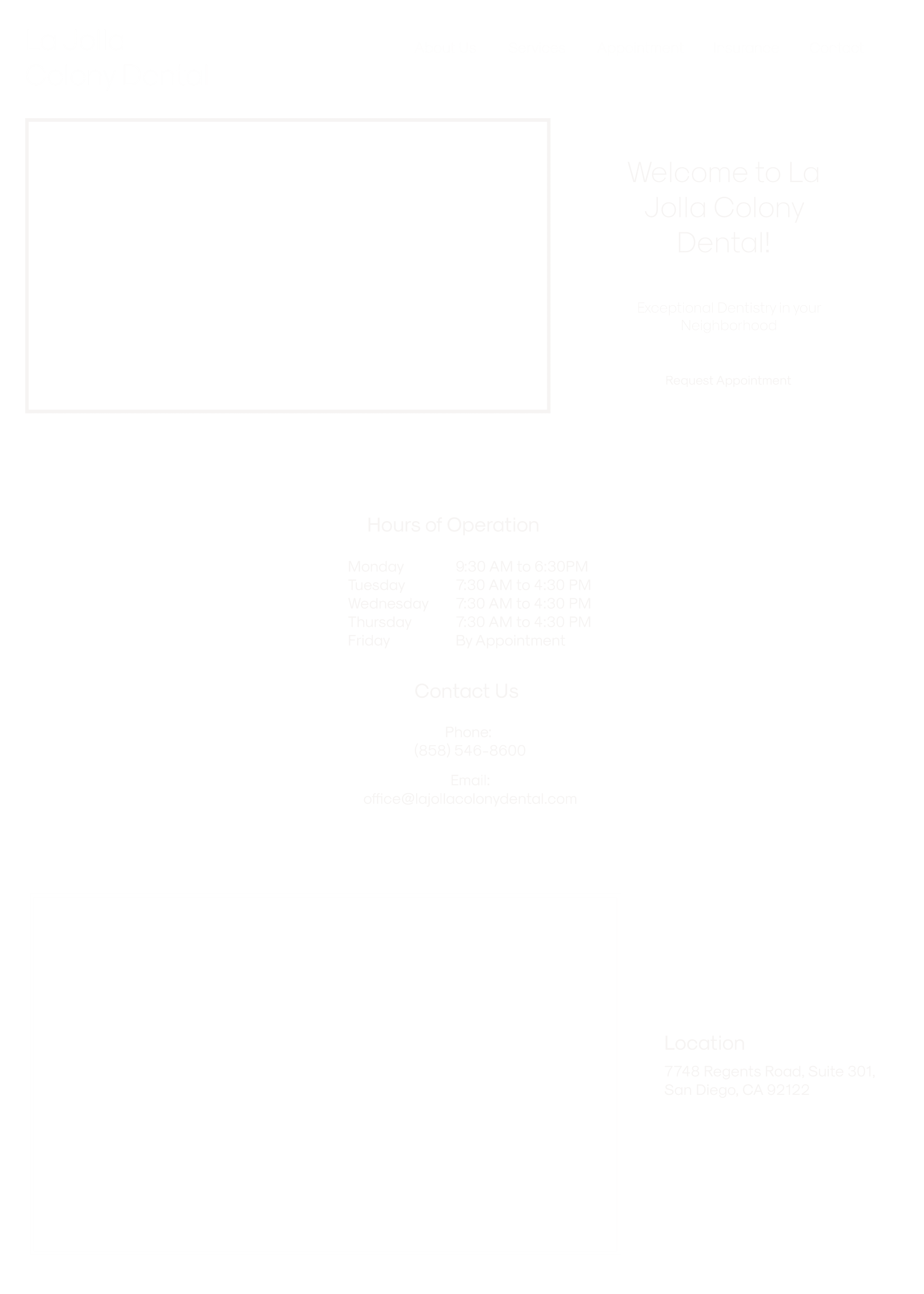La Jolla Colony Dentistry had a website that wasn't doing them any favors. No brand identity, outdated info, and missing basic features like appointment booking. Over 10 weeks, we rebuilt it—brand, research, booking system, the works.